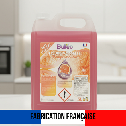 Faites briller votre vaisselle tout en profitant d’un parfum fruité et tonifiant avec le Liquide Vaisselle Pamplemousse Bulléo, fabriqué en France.